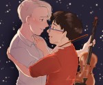 My pieces for @bigbangonice , this is for @sugarlipx’s fic One Last Song Before I Go. It has violinist Viktor and Yuuri sings and has the voice of an angel, please go read it, it’s the sweetest, fluffiest fic ever ;;;
