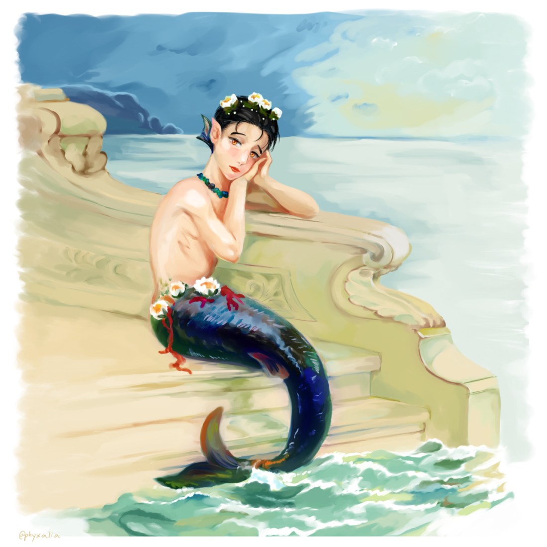 Reference from Evelyn Stuart Hardy’s painting “The Little Mermaid, by Hans Christian Andersen”. The details killed me but it was so fun!! I enjoyed painting Yuuri’s tail and the little waves 😍💙 This is also my very first contribution for Mermay!
