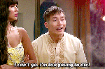 Before that, he’s sad she’s dating someone else, and tells someone, “it’s not her fault I didn’t ask her sooner”.