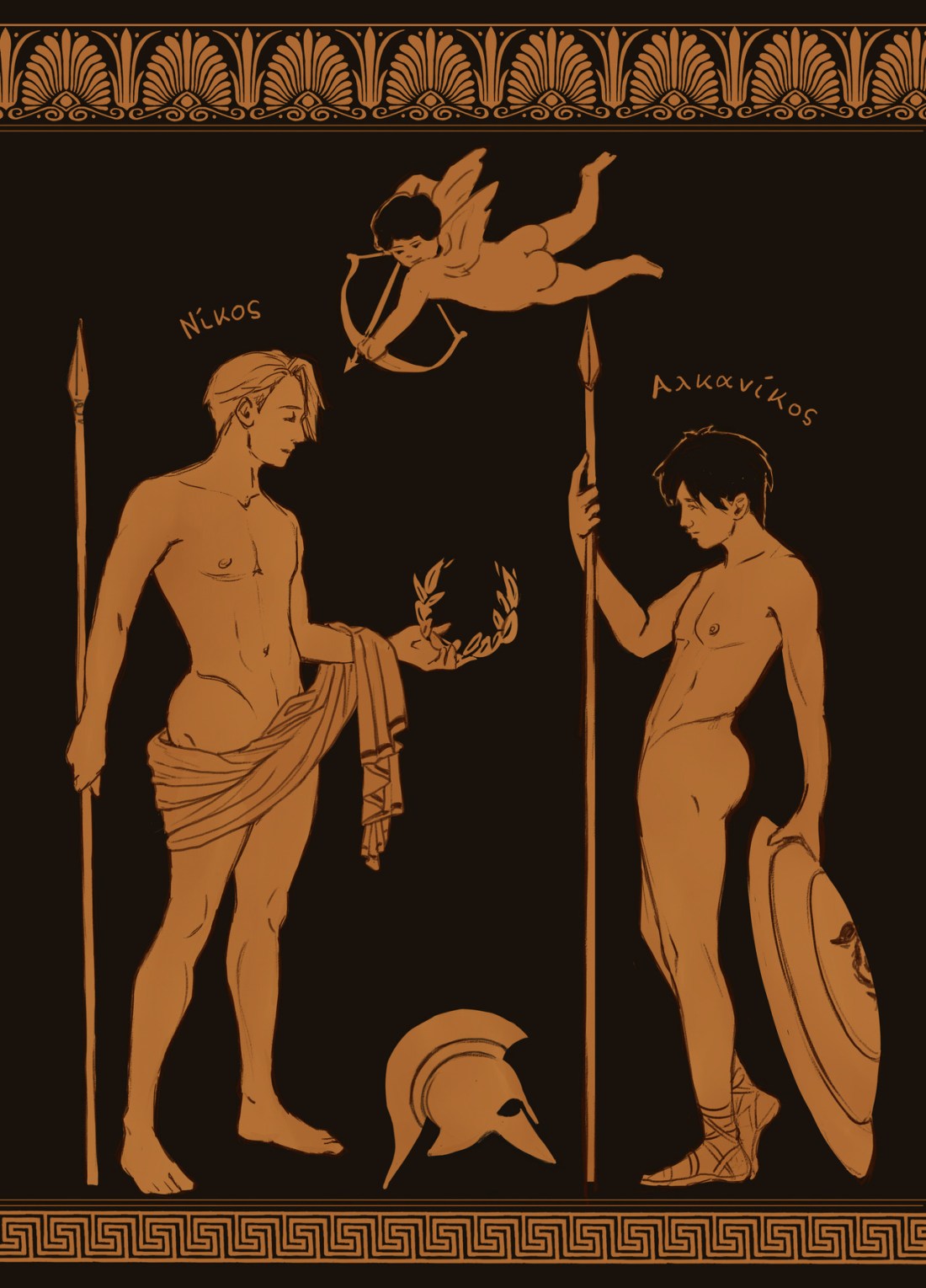 Another promo art for @borntomakearthistoryzine – exploring various styles in art history – this time ancient greek pottery 🙂 It somehow evolved into a vaguely angsty AU, oops ^^”