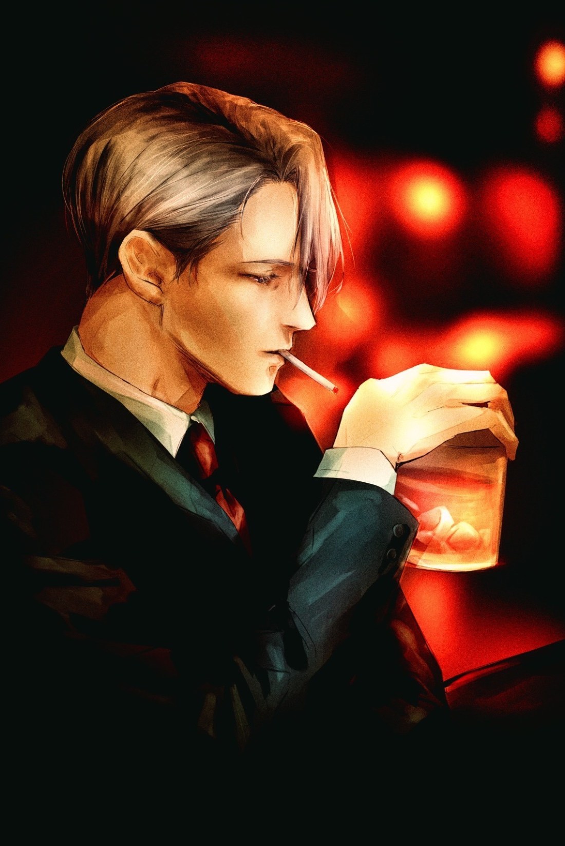 My (1 day-late) birthday offering to the bestest writer ever+my fandom wife@orchids-and-fictional-cities 💗 – of our favourite detective from the noir AU 🙂